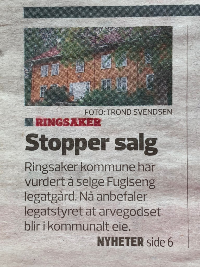 Det er nå gått over syv måneder siden vi ble kastet ut fra Fuglseng legatgård, på grunn av at vi ikke klarte å betale husleie i koronatid. Ingen har tatt kontakt med oss etter utkastelsen. Ordfører Anita Ihle Steen (AP), som inviterte oss, har løyet for oss, media og Ringsakers befolkning, når hun har sagt at kommunen er eier av legatgården. Hvorfor har hun løyet om dette? Hvorfor og hvordan kunne kommunen gi fra seg eierskapet til en så stor gave? Den var gitt til glede og nytte for Ringsaker Herred og ikke til et styre på 5 folkevalgte. Alle vi snakket med i kommunestyret, befolkningen og media ga oss bekreftelse på at det var kommunens gård.